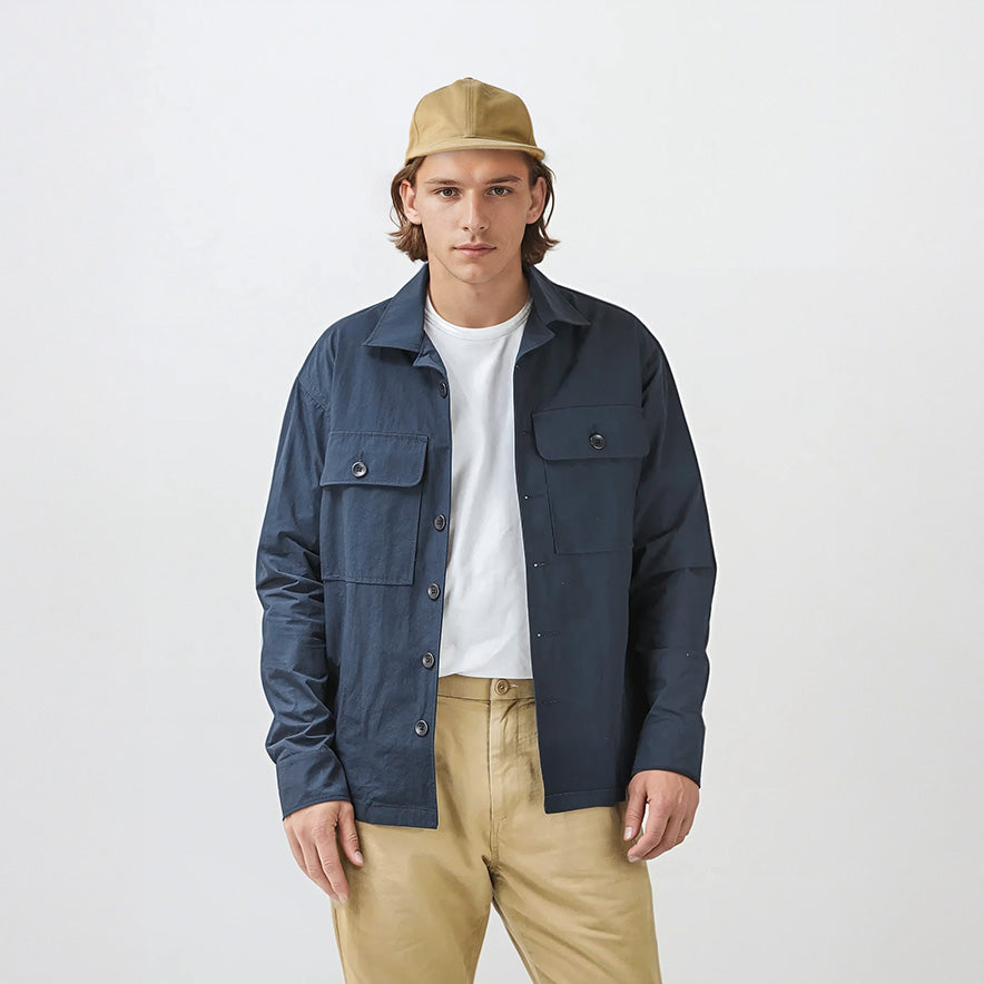 Experience the exceptional quality of the Kerrin Overshirt. It features function-specific Japanese fabric with a water-repellent finish to keep you unworried, whatever the weather. Then there are the extra-large corozo buttons – crafted from a natural material foraged from the jungle floors of Central America, prized for its unique texture and durability. And, of course, behold the oversized double chest pockets, designed for maximum stowage of your everyday carry.